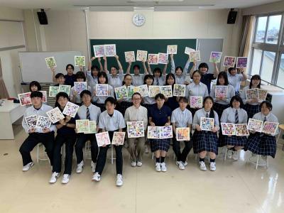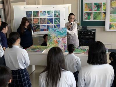 黒石高校では5回目となった画家小林志保子先生による特別授業が無事終了しました。様々な表現技法の体験の中から自由にイメージを広げ、さらに再構成していく作業に、新たな表現の可能性を体感する貴重な時間となりました。