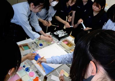 さらに、様々な表現技法を体験し、生徒は自分のイメージを思い思いに膨らませていきます。