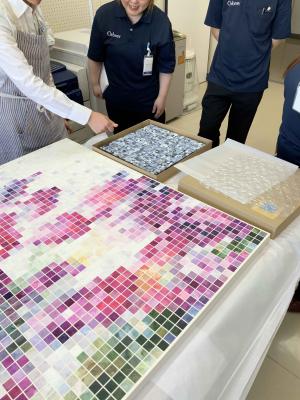 この日の作業は、1日目で作られたイメージを再構成していくことです。細かく分割された沢山のピースを、一つは自分が意図した構成で、もう一つは偶然選び出した組み合わせで作品化していきます。