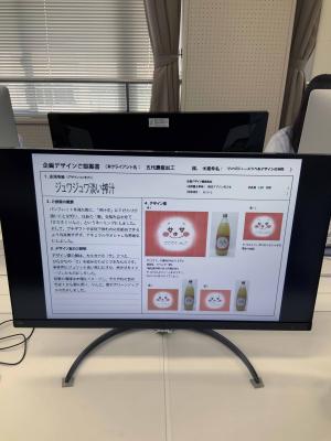 講師紹介に引き続き、生徒で構成された5つのカンパニー紹介から授業がスタートしました。講義ではデザイン現場における「ネーミング」や「商標と権利」、「パッケージデザイン」等について実例を交えながら解説していただき、その後、生徒は担当商品のロゴやパッケージデザインについてのデザインカンプ(完成予想図)を作成しました。