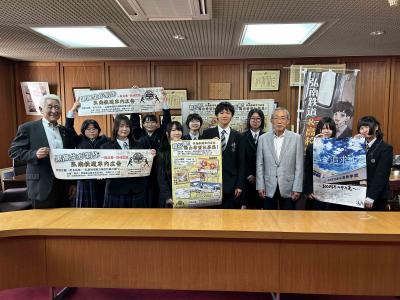 令和7年6月2日(月)、本校生徒有志9名が黒石商工会議所を訪れ、今年度の「産学官連携事業(弘南鉄道車内広告制作事業)」協力依頼を行いました。昨年度に引き続き地元広告制作希望の事業者を募って広告を制作、年度末、弘南鉄道弘南線に広告を掲出する予定です。1期生から続く「私たちは弘南鉄道を応援しています」という合言葉のもと、今年度事業の成功を誓いました。