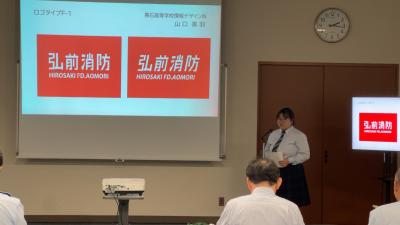 弘前地区消防事務組合の要請を受けて、本科との連携事業についての説明会が行われたのは令和6年5月2日のことでした。当該事務組合のエンブレム、活動服背面や消防車両に記されるロゴデザインを一新したいとのこと。そのことは2年次のデザイン課題「依頼事業に学ぶ」として、全員で制作に取り組み、第3回情報デザイン科展で一斉に公開展示を行いました。さらに、その中からエンブレムデザイン及び「弘前消防」というロゴタイプの選定を行うことを目的として6月11日(水)、デザインコンペを実施しました。